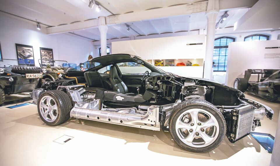 Ja, es werden im Wesentlichen die Hintergründe, Historien und Werdegänge jener Menschen fokussiert, die die Entwicklung dieser wunderschönen Fahrzeuge überhaupt erst ermöglicht haben. Besonders stolz, so erzählt uns die Marketingexpertin, sei man hier im Hause auf den sogenannten Ur-Porsche (Foto rechts), einer Designstudie, die nur dreimal gebaut worden ist. Hierbei haben die Designer extrem auf die Verwirklichung der Stromlinienform in Reinkultur geachtet: Verzichtet wurde dafür sogar auf Außenspiegel.